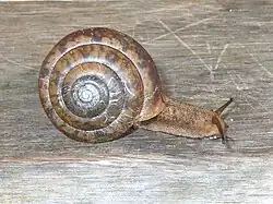 Satsuma myomphala, in Japanese: Kobeso-Maimai (コベソマイマイ), is a species of air-breathing land snail, a terrestrial pulmonate gastropod mollusk in the family Camaenidae. This species is found in Japan.