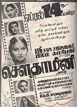 - ^ a b c "1951 – சௌதாமினி – ராஜராஜேஸ்வரி பிலிம் கம்பெனி சௌகாமினி(தெ)". Lakshman Sruthi (in Tamil). Archived from the original on 19 June 2017. Retrieved 19 June 2017.