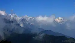 After 6 km of a difficult and tiring trek, the camp at Maylee Thatch (10,500 feet) is reached. Morning has magnificent views.