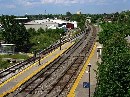Savage station is a MARC Camden Line station located on the border of Howard County and Anne Arundel County, Maryland. It is located off Dorsey Run Road near Maryland Route 32 between Annapolis Junction and Savage, Maryland. The station has one side platform and one island platform serving the three tracks of the CSX Capital Subdivision. A 914-space parking garage is located on the north side of the tracks.