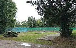 Supplemental to the original agreement, Queen Victoria paid an additional £250 (equivalent to £29,700 in 2023) to have the graves maintained in perpetuity.[3] Despite this, by 1993 the area was greatly overgrown and when a member of the Anglo-German Family History Society attempted to locate the site, she was told that there was nothing to see.[9] The vaults were eventually uncovered, and the inscriptions recorded, by two members of that society.[9] Around 2002, the Friern Barnet & District Local History Society also began to take an interest in the vaults and conducted their own research, including contacting the royal archives at Windsor who suggested the society contact the Anglo-German Family History Society.[10] In 2006, an information board was installed at the vaults by members of both societies.[11]
