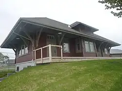 The old train station in 2009, relocated in a park in Sayabec, Quebec
