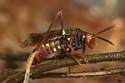 Scaphura is a Neotropical genus of bush crickets in the subfamily Phaneropterinae. Some of the species within Scaphura are Batesian mimics of wasps,[2] for example the type species, Scaphura nigra,[1] is a polymorphic Batesian mimic of wasps of the genus Pepsis and Entypus (Pompilidae) and the potter wasps Polistes (Vespidae).[3] The genus is restricted to South America.[1] Another genus of Neotropical phaneropterine bush crickets, Aganacris, also are Batesian mimics of wasps.[4]