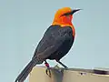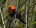 The scarlet-headed blackbird (Amblyramphus holosericeus) is an icterid found in the South American wetlands.
