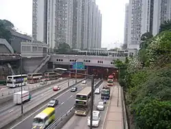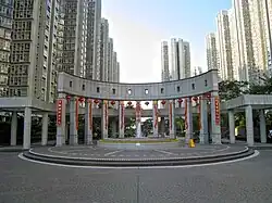 Situated on a platform above Route 2, the underlying layer of the platform houses a shopping mall, Sceneway Plaza, and a link to the MTR station. Two other major shopping plazas in Hong Kong, APM and Laguna Plaza are close by.
