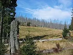 The Ruckowitzschachten at Rukowitzberg. In the background are the mountains of Großer Arber and Zwercheck