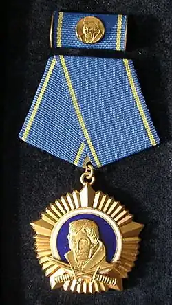 The Scharnhorst Order (German: Scharnhorst-Orden or German: Scharnhorstorden) was the highest medal awarded to members of the East German National People's Army (NVA). It was given for services to military or other strengthening of the German Democratic Republic (GDR). Established on 17 February 1966 by the Council of Ministers of the GDR, it was awarded until the dissolution of the GDR in 1990.