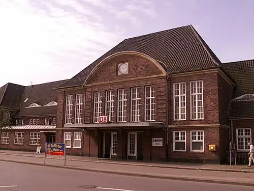 Schleswig station is the station of the city of Schleswig in the German state of Schleswig-Holstein. It is located on the Neumünster–Flensburg and Husum–Jübek-Schleswig–Kiel lines. It is currently operated by Deutsche Bahn, which classifies it as a category 5 station.[1]