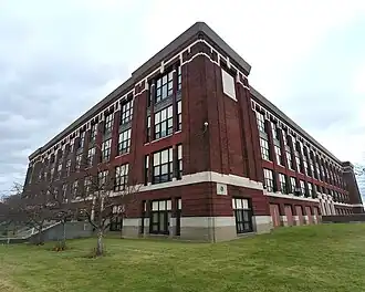 The old Technical High building was then designated as School 87 and re-opened as Clinton Junior High School (or Clinton Center School), making it one of the first junior high schools in the city and the only one to house grades seven and eight exclusively.[2] Clinton Junior High was one of the most segregated schools in the City of Buffalo with a very high minority enrollment and along with other East Side high schools, was a frequent site of gang and racial violence during the 1960s and 1970s.[3] In 1976, the school was converted to the Buffalo Academy for Visual and Performing Arts as part of Buffalo's desegregation plan. Beginning with Clinton's original student body, the newly renumbered School 187 eventually became a magnet school that enrolled students from all areas of the city.