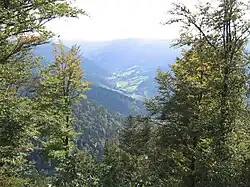The Schultiskopf lies in the highest part of the Central Black Forest and, at 1,076.6 m above sea level (NHN),[1] is a ridge-like subpeak of the Obereck (1,176.6 m above sea level (NHN)[1]).
