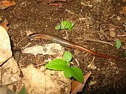 The red forest skink (Scincella assata) is a species of skink found in Mexico, Guatemala, El Salvador, Nicaragua, and Honduras.[2]