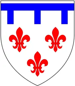 Arms of de Scobahull of Scobahull: Argent, three fleurs-de-lys gules a label of three points azure[1] As visible in East Ogwell Church and in St John's Church, Paignton