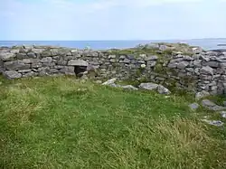 Findings from the site of the broch at Dun Vulan in South Uist, which was occupied for c. 150 to 50 BCE,[22] have generated some debate about the nature of life in the Atlantic coast during the Iron Age. A study of the site in the 1990s posited that the evidence of animal bones suggested a significant difference between those who lived in and around the broch and those in the surrounding area. They concluded that there was a settlement hierarchy similar to the distinction between Medieval English aristocrats and commoners. A second paper two years later refuted this.[23] It does seem clear that in some parts of Iron Age Scotland, quite unlike almost all of recorded history right up to the present day, there does not seem to have been a hierarchical elite. Studies have shown that stone roundhouses with massively thick walls, must have contained virtually the entire population of islands such as Barra and North Uist and throughout Argyll. Iron Age settlement patterns in Scotland are not homogeneous, but, in these places, there is no sign of a privileged class living in large castles or forts, nor of an elite priestly caste or of peasants with no access to the kind of accommodation enjoyed by the middle classes.[24][25][f]