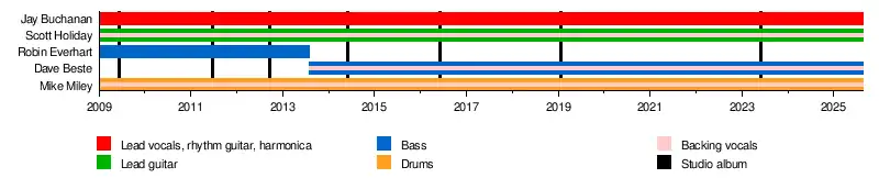 As a singer-songwriter Buchanan was skeptical about joining a rock and roll band but after seeing the reception to the band's debut album Before the Fire (2009) produced by Dave Cobb, Buchanan committed to Rival Sons full-time. Jack Rivera of HuffPost declared them "A rock band to watch" in November 2009.[4] Following this acclaim, they were invited to perform as a supporting act for AC/DC, Alice Cooper and Kid Rock shows.[5] During this time, Rival Sons also performed on the race track during a televised show of the Indianapolis 500.[6]