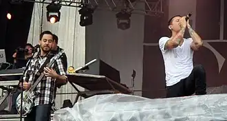 The band was nominated for six Billboard Awards in 2011 for Top Duo or Group, Best Rock Album for A Thousand Suns, Top Rock Artist, Top Alternative Artist, Top Alternative Song for "Waiting for the End" and Top Alternative Album for A Thousand Suns, but did not win any award.[114] The band charted in numerous Billboard Year-End charts in 2011. The band was No.39 in the Top Artists Chart,[115] No.87 in the Billboard 200 Artists chart,[116] No.11 in the Social 50 Chart,[117] No.6 in the Top Rock Artists Chart,[118] No.9 in the Rock Songs Artists Chart,[119] No.16 in the Rock Albums Chart,[120] No.4 in the Hard Rock Albums Chart,[121] and No.7 in the Alternative Songs Chart.[122]