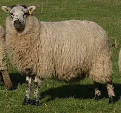 The sheep kept throughout the British Isles up to the Iron Age were small, variable in colour and short-tailed. From Roman times onwards these were progressively displaced in Britain, first by white-faced sheep with longer tails, and later by long-tailed, black-faced, horned sheep.[5]