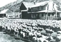 The Neill family also bought the surrounding 840 acres which was farmed for alfalfa. The ranch raised sheep and cattle and a slaughterhouse was opened on-site.[13][11] A local biographer wrote of the ranch and homestead that it had “ample barns and other out-buildings and [was] supplied with implements and appliances of every kind essential to diversified farming.”[14]