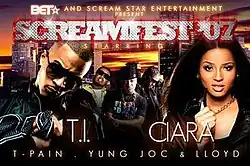 Screamfest '07 was a summer concert tour headlined by American rapper T.I. and R&B singer Ciara. The tour featured performances from Lloyd, T-Pain, Yung Joc, Tiffany Evans, Yung Berg and 50 Cent. It was a 20-city tour that took place from August 3, 2007 until September 2, 2007 in the United States. The tour was scheduled to begin July 23, 2007, but it was changed for unknown reasons.