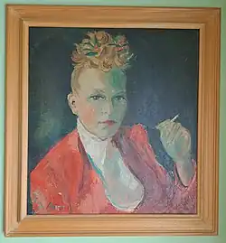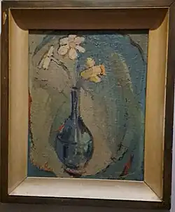 She was given solo shows at the Cromer & Quint Gallery in 1958, at the Little Gallery in 1959 (both in Chicago), and at New York's Poindexter Gallery in 1960.[30][31][32] The Tribune's critic called the flower studies and small abstractions of the Cromer & Quint exhibition "unusually interesting".[33] She was able to borrow her commissioned portrait of the actress Geraldine Page for the Poindexter show.[32] This painting was made in 1959 during the original Broadway production of "Sweet Bird of Youth" and was hung in the Martin Beck Theater where the play was performed.[34]