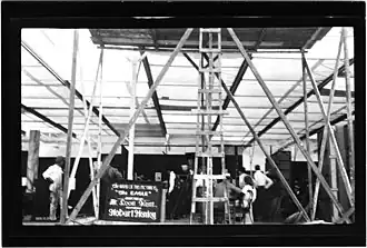 A scrim can be used indoors on a soundstage. For example, a set may be built on a soundstage to include both the interior and exterior of a wall with a window, thereby enabling characters inside to see characters on what appears to be a patio or walkway outside. The portion of the set that appears to be "outside" may have to be brightly lit to simulate sunlight. A scrim is then attached to a frame overhanging the entire "outdoor" portion of the set between the lighting and the actors, in order to diffuse the light so that it appears more natural when it hits the actors' faces.