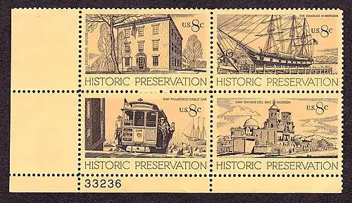 Four of the U. S. Postmasters' Provisional stamp issues distributed between 1845 and 1847 were se-tenant productions: the Baltimore Postmaster's provisionals (two different images [5¢ and 10¢] on a sheet of twelve), the St. Louis Bears (three different images [5¢, 10¢ and 20¢] on a sheet of six), the Providence R. I. provisionals (two different images [5¢ and 10¢] on a sheet of twelve) and the Alexandria Postmaster's Provisionals (a pair of not-quite-identical 5¢ images). With the issuance of U. S. national postage stamps, which began in 1847, se-tenant production disappeared from the nation for 117 years, not introduced until the 1964 Christmas Issue, which presented images of holly, mistletoe, poinsettia and a conifer sprig in a block of four stamps. After 1967, the U. S. began offering se-tenant issues with some frequency.