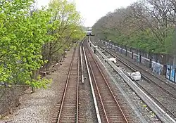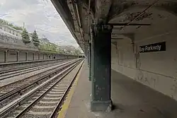 After passing the former junction with the line to the shore, the Sea Beach widens to the width of four tracks. All stations have two side platforms with no platform access to the express tracks anywhere on the Sea Beach right-of-way.[5]