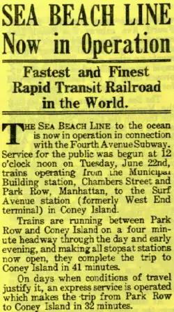 35. ^ "MORE SEA BEACH TRAFFIC.; Three Mapleton Stations Contribute 4,000 Passengers Daily". The New York Times. December 5, 1915. ISSN 0362-4331. Retrieved February 21, 2019.