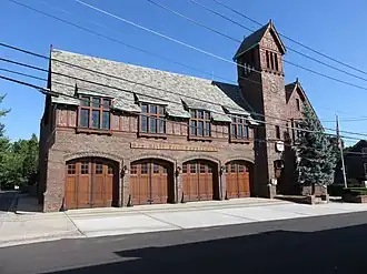 The Sea Cliff Firehouse is a historic fire station located at Sea Cliff, Nassau County, New York. The fire department was established in 1884, and the firehouse was built in 1931. It is a 1 1/2-story, Tudor Revival style brick building with ornamental half timbering. It has four engine bays with segmental arched openings and a steep slate roof with dormers. It features a bell tower topped by a slate gable roof.[2]