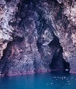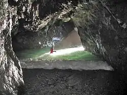 A sea cave, is also known as a littoral cave, a type of cave formed primarily by the wave action of the sea. The primary process involved is erosion. Sea caves are found throughout the world, actively forming along present coastlines and as relict sea caves on former coastlines. Some of the largest wave-cut caves in the world are found on the coast of Norway, but are now 100 feet or more above present sea level.[1] These would still be classified as littoral caves. By contrast, in places like Thailand's Phang Nga Bay, solutionally formed caves in limestone have been flooded by the rising sea and are now subject to littoral erosion, representing a new phase of their enlargement.