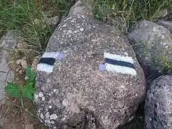 The Sea to Sea Hiking Trail (Hebrew: שביל מים לים, Shvil MiYam LeYam) is a long distance hiking trail that crosses the north of Israel, its western end on the coast of the Mediterranean Sea at Achziv National Park near the Lebanese border in the far north of the country, extending eastward to the coast of the Sea of Gallilee near Kibbutz Ginosar, with a total length of about 70 km (43 mi). When hiked from west to east the total elevation gain and loss are about 1.56 km and 1.77 km respectively. The trail is marked with different colors in different sections but is accompanied by purple circles throughout the trail. It takes an average of 3–5 days to complete.[1][2]