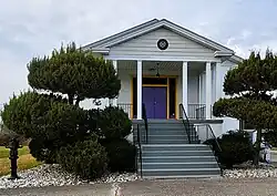 Between 1944 and 1947, during the US Government relocation program, about 600 families (an estimated 2,500 Japanese-Americans) had been living and working at Seabrook Farms.[3][4][5][6][7][8] In response to the community's spiritual concerns, Shosetsu Tsufura[9] and Zaishin Mukushina[10] began holding non-denominational Buddhist services. Initially services took place in a Child Care Center building, funded by the Federal Public Housing Authority, in Hoover Village, north of the Upper Deerfield Township Municipal Building.[7] The Buddhist church was formed in the winter of 1945[8][11] and Kaoru Kamikawa was selected as president of the organization.[12]