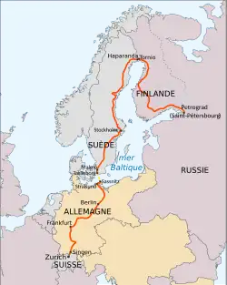 The most notable use of a sealed train was the return of Vladimir Lenin to Russia from exile in Switzerland in 1917—in fact, that particular journey was not a true sealed train, because the passengers disembarked to spend the night in Frankfurt[1]—but the practice was used a number of other times throughout the 20th century to allow the migration or transport of controversial individuals or peoples. For instance, sealed trains were used for repatriation of combatants in the Spanish Civil War,[2] Jewish emigration from Nazi Germany to the United States,[3] and expulsion of East German refugees to West Germany.[4]