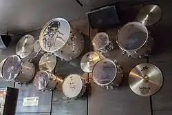 Kinney uses a drum kit made by Drum Workshop (DW Drums) with Remo heads and cymbals by Sabian.[49] He uses Vater Percussion drumsticks.[50]