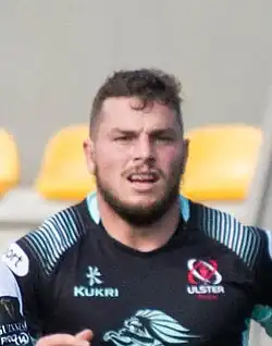 Injuries curtailed his appearances in his first season with Ulster, but he became much more prominent in 2015–16,[7] making 23 appearances including 16 starts, scoring five tries and making 176 tackles.[8][1] He was selected for the 32-man Ireland squad to tour South Africa in June 2016.[9] In 2016–17 he made 27 appearances including 24 starts,[1] making 329 tackles and scoring four tries.[10] He was named Rugby Writers' Player of the Year in the 2017 Ulster Rugby Awards.[11] In 2017–18 he made 22 appearances including 18 starts, scoring four tries and making 196 tackles.[12] In 2018–19 he made 25 appearances including 16 starts, making 215 tackles and scoring one try.[13] He made his 100th appearance for Ulster in March 2019 against the Dragons.[2] In 2019–20 he made 19 appearances including 16 starts, scoring two tries.[1] In 2020–21 he made 19 appearances including 13 starts, scoring five tries and making 218 tackles and seven turnovers,[14] but missed the second half of the season with a shoulder injury that required surgery.[15] His opportunities in 2021–22 were limited, with seven appearances and two starts,[1] and he was released at the end of the season, to return to New Zealand.[16]