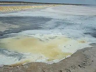 The Sebkha Sidi El Hani (سبخة سيدي الهاني) is a salt lake in the Sousse Governorate of Tunisia, 25 kilometres (16 mi) southwest of the city of Sousse and 25 kilometres (16 mi) southeast of the city of Kairouan. It covers an area of 36,000 hectares and consists of three depressions: the Sidi El Hani sebkha stricto sensu, the Sebkha Souassi and the Sekha Dkhila. Fueled by several wadis, such as the Wadi Chrita, the Wadi Mansoura and the Wadi Oum El Mellah, it retains water all year round only occasionally. The catchment area is 360 square kilometres (140 sq mi) and the system empties into the Mediterranean Sea.