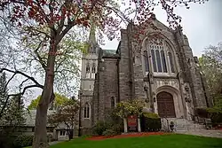 Planning to build a new structure began in 1908. The land was purchased in 1913 and the cornerstone laid in 1914, the 150th anniversary of the congregation. The building was designed by the noted ecclesiastical architects Allen & Collens, a leading firm with offices in Boston and New York, with Charles Collens having the principal role for the design.[2] The firm was noted for its Gothic Revival design work including the Cloisters Museum in New York.