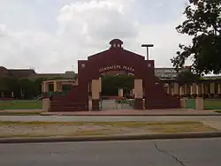 Guadalupe Plaza is 1 mile (1.6 km) east of Downtown Houston. As of 2008 the park was a haven for drunk and homeless individuals. A man named George Helber frequently filed complaints to ask the city of Houston to improve the park.[54] In 2009 the president of the Second Ward Super Neighborhood, Jessica Hulsey, complained about the park's condition. During that year, Isa Dadoush, a general services manager of the City of Houston announced that there were plans for a $171,000 upgrade of the park to be completed in the northern hemisphere summer of that year, and that the city is advertising for a construction contractor to do the job.[55] Reconstruction of the park began in 2014, with completion targeted for summer 2015.