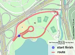 The Self-Transcendence 6- & 10-day Race are two concurrent multiday running events, held in Flushing Meadows–Corona Park, a large public park in the borough of Queens in New York City. The course is one mile (1.6 km) long.[1] They are held annually in April and organized by the Sri Chinmoy Marathon Team.[2][3][4]