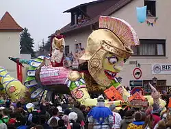 The town of Seligenstadt is widely known for its Carnival parade, which snakes its way, traditionally on Rosenmontag (Shrove Monday), through the historic inner town and the neighbouring parts of town. There is proof that this Rosenmontag parade has existed since 1859. Nowadays the parade has more than a hundred elaborately built attractions, drawing an average of forty thousand interested visitors from near and far. At Carnival time, the Seligenstadt fools (Narren) call themselves “Schlumber” and their town “Schlumberland”. Each year, a Carnival Prince and Princess are chosen, as are two children to be the Child Prince and Princess. Besides the Rosenmontag parade, there is a Kinderfaschingsumzug (“Children’s Carnival Parade”) each year on the Sunday.