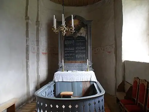 In 1814, this church served as an election church (Norwegian: valgkirke).[6][7] Together with more than 300 other parish churches across Norway, it was a polling station for elections to the 1814 Norwegian Constituent Assembly which wrote the Constitution of Norway. This was Norway's first national elections. Each church parish was a constituency that elected people called "electors" who later met together in each county to elect the representatives for the assembly that was to meet in Eidsvoll later that year.[6][8]