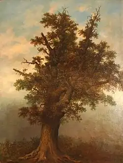 The earliest attestations for the name 'Selly Oak' date from 1746, and come from the manorial court rolls for the Manor of Northfield and Weoley, of which the district of Selly was a part.[59] The stump of the old oak in Selly Oak Park was examined using dendrochronology, and the results gave a date of 1710–1720 for when the tree began growing.[60] It is therefore thought that the tree became a landmark following the turnpiking of the road from Bromsgrove to Birmingham (now the Bristol Road), which began in 1727.[61]