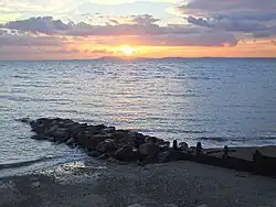 In the 19th and early 20th century the local fishermen jointly owned a longboat, operated by 22 oarsmen. If any vessel was stranded off the Bill, after any rescue work had been completed, the pilot of the longboat would then negotiate with the skipper of the damaged vessel a price to assist them to safe harbour.[7] In modern times the "Channel Pilot for the South Coast of England and the North Coast of France" cautions sailors that Selsey Bill is difficult to locate in poor visibility.[16] However, in clear weather, when the wind is moderate, a shortcut can be afforded by using the Looe Channel that passes through the rocks and ledges south of the Bill, which is marked by buoys. The pilot requires a large-scale chart, and proceeding with caution is recommended.[16]