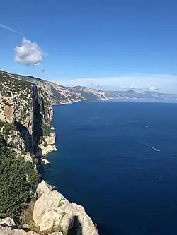 The Selvaggio Blu (Wild Blue) is a trekking route in the territory of the district of Baunei (Sardinia). It was conceived in 1987 by Mario Verin, (photographer and alpinist) and Peppino Cicalò (architect), President of the Nuoro section of the Italian Alpine Club. The itinerary extends for over 40 kilometers (approximately 25 miles) from the touristic port of Santa Maria Navarrese (Baunei) to the beach of Cala Sisine (Baunei).[1] It takes on average 4 days to complete.