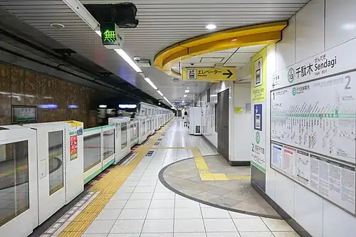 ![]() Platform 1 of Sendagi Station in January 2023 | |||||||||||
