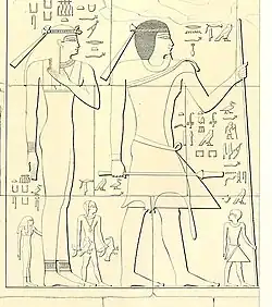 ![]() Mehi and his wife Khentkaus. With them are their children. | |
