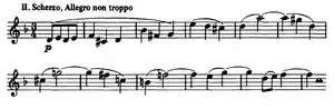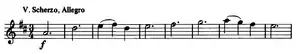 - Scherzo. Vivace (C major) – Trio (F major)