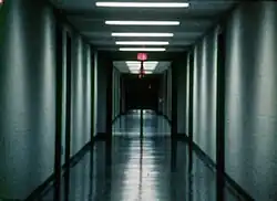 Serene Velocity is a 1970 American experimental short film directed by Ernie Gehr.[1] Gehr filmed it in the basement hallway of a Binghamton University academic building, using a static camera position and changing only the focal length of the camera. It is recognized as a key work of structural filmmaking and has been inducted into the U.S. National Film Registry.