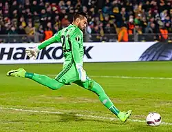 After his return to Sampdoria, he was most often the backup to Emiliano Viviano.[68] But following Viviano's injury, Romero had an opportunity when he made his first appearance on 19 October 2014, in a 2–2 draw against Cagliari.[69][70] Romero had a handful of first team opportunities playing throughout 2014 until Viviano return in early 2015.[71] In the January transfer window, Romero's lack of first team opportunities, prompted him to leave the club in January, but this never happened.[72] From that moment on, Romero returned as a second choice goalkeeper and never played again, as he appeared on the substitute bench, as well as, injury.[73] At the end of the 2014–15 season, Romero went on to make eleven appearances in all competitions.
