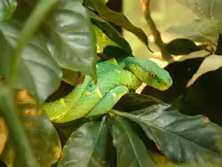 Side-striped palm-pitviper in display at the Serpentarium