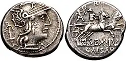 A denarius depicting Sextus Julius Caesar, 129 BC